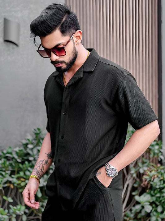 66% offTextured Black Shirt