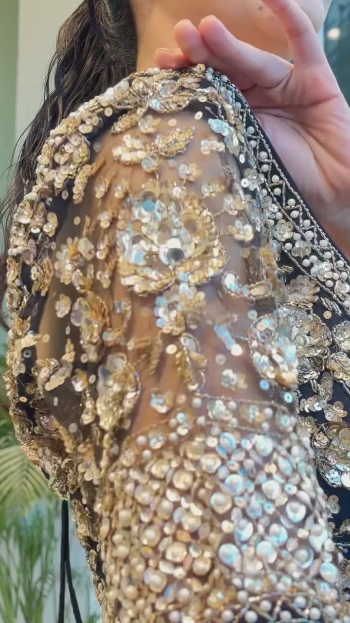 Black Saree with Golden Sequins Magic