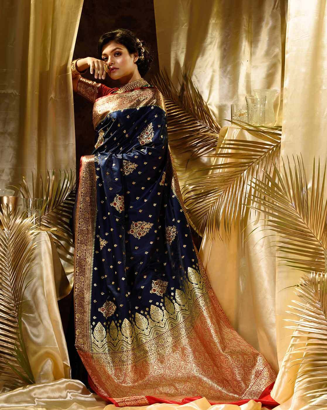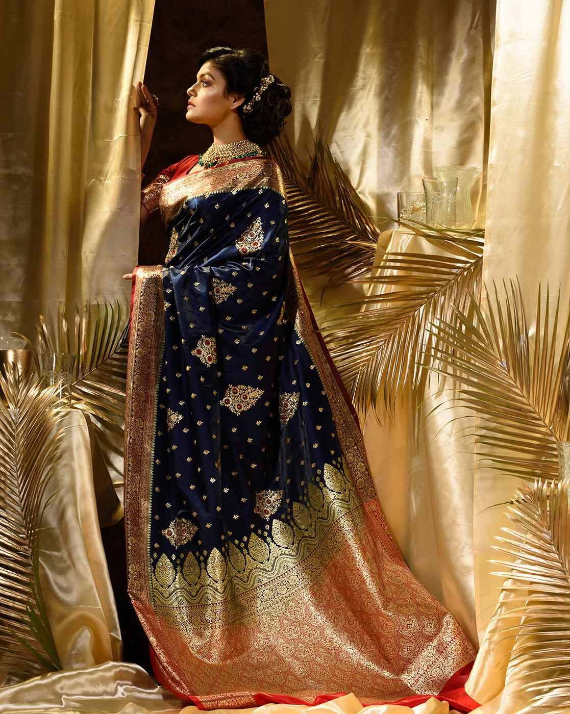 Blue Woven Kanjivaram Banarasi Jacquard Sari